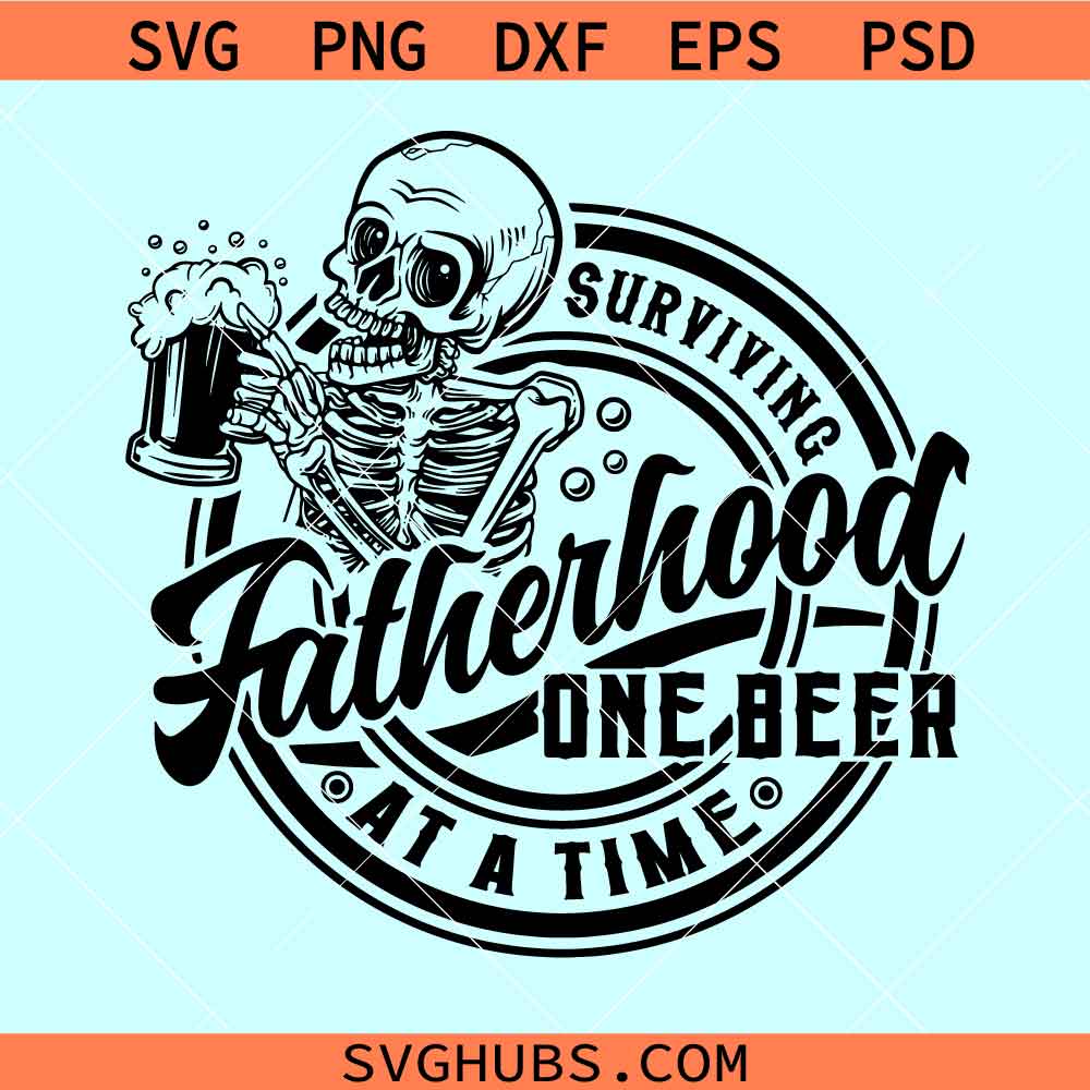 Surviving fatherhood one beer at a time SVG, skull with beer svg, Fathers Day svg, beer lover svg