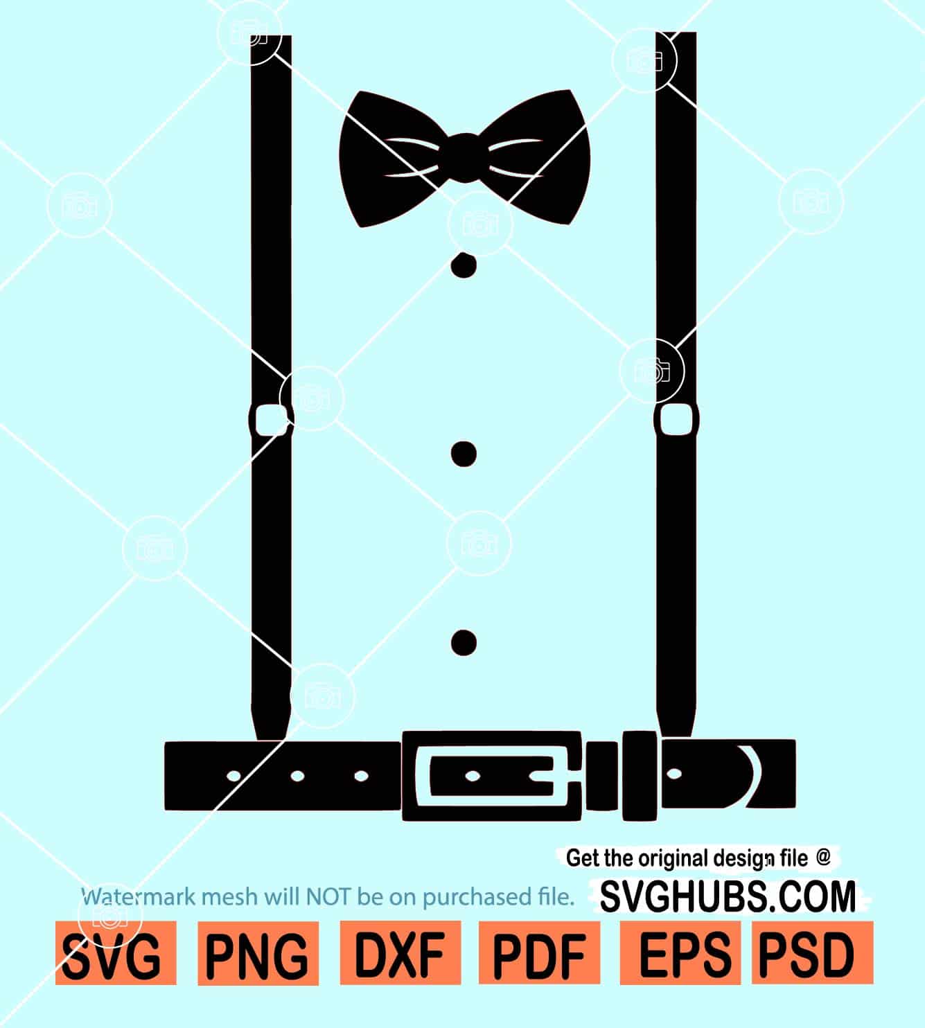 Suspenders with bow tie SVG, Tuxedo svg, suspenders svg, bow tie svg, Gentleman Svg, Bowtie svg, Little gentleman svg, Black tie svg, EPS, DXF, PSD, PNG files, Silhouette files, SVG files for Cricut