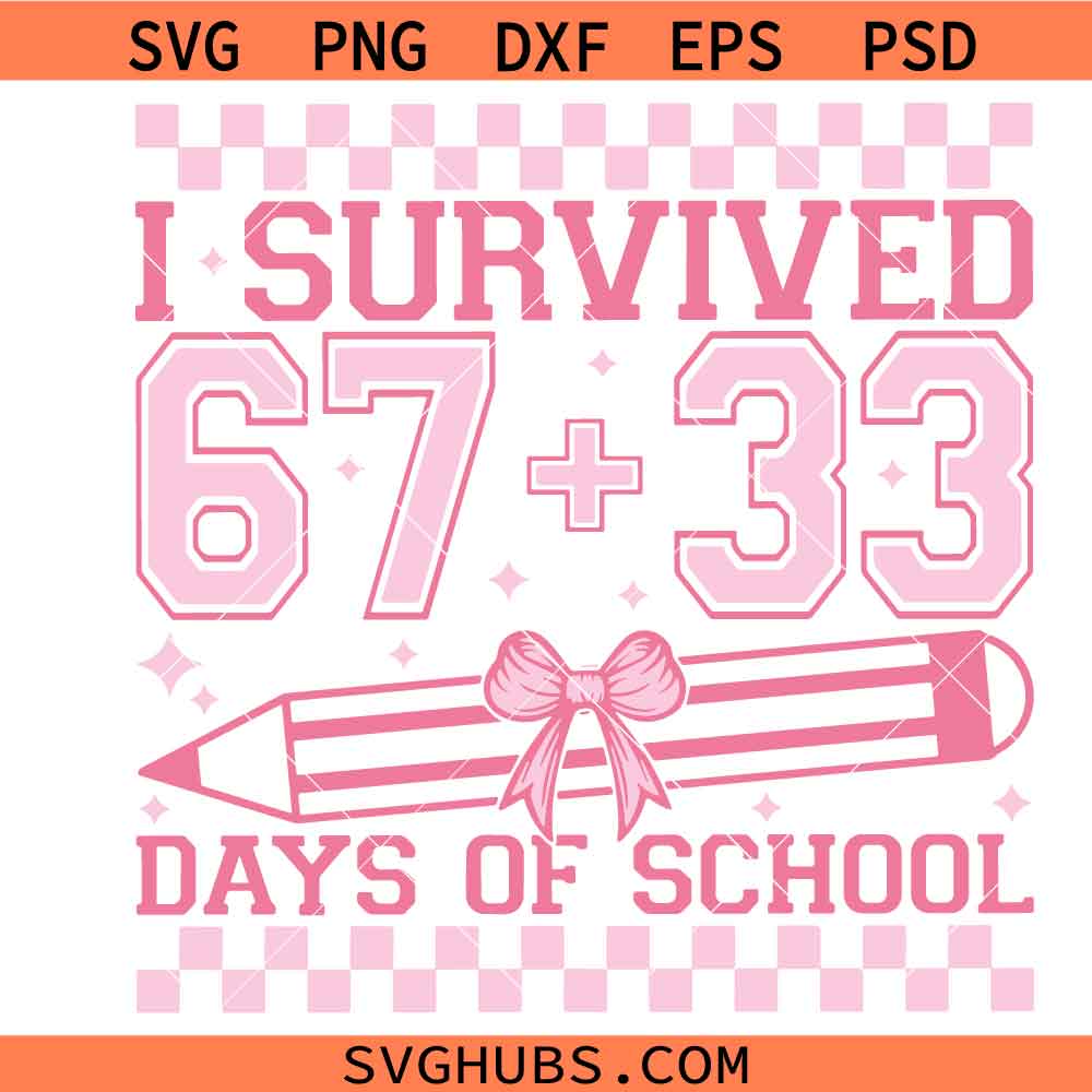 I Survived 67+33 Days Of School Png SVG, 100 days of school svg, 100th Day Of School Teacher Girl Svg, 67+33 days of school Bruh SVG