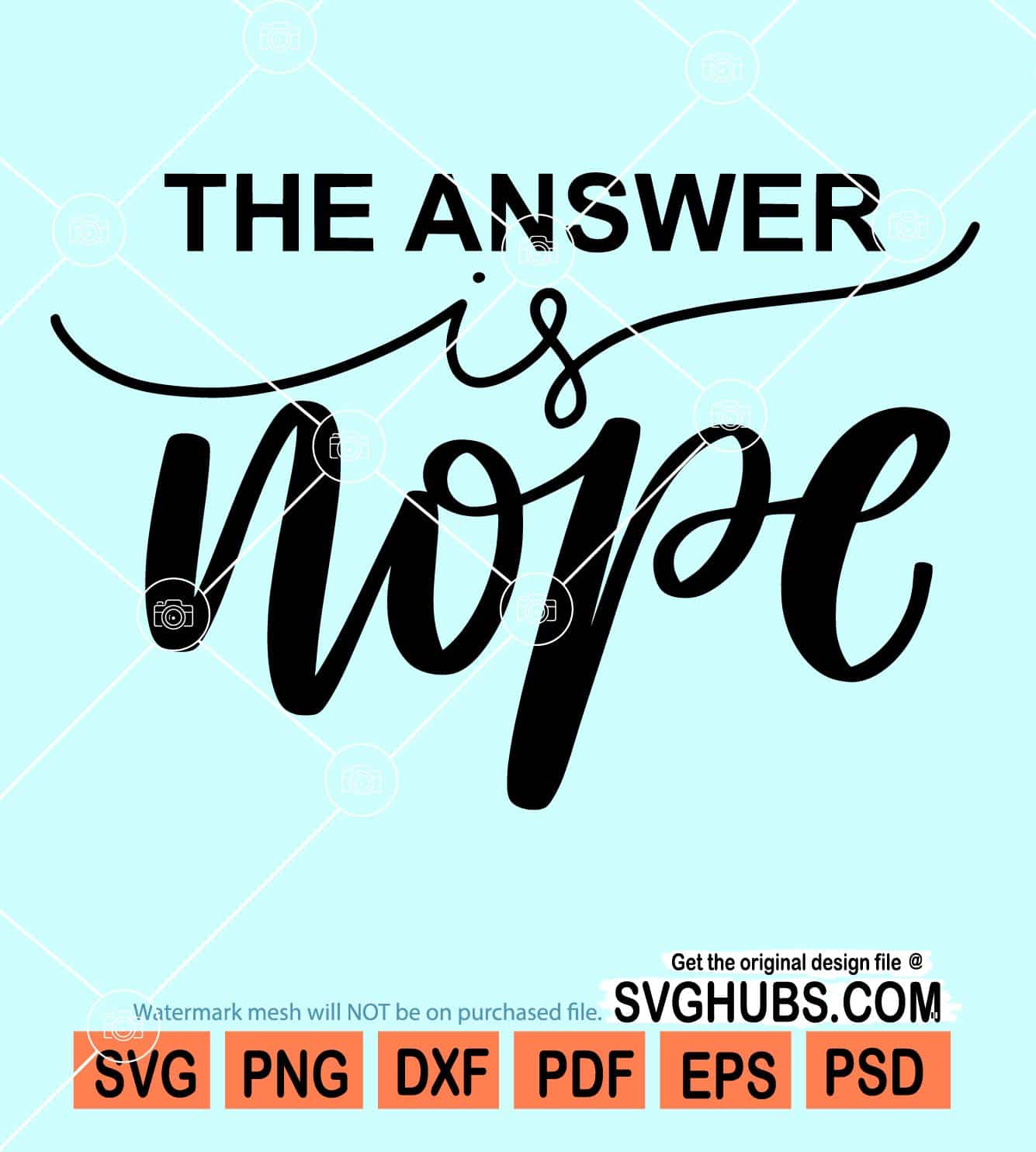 The answer is nope svg, sarcastic quote svg, Adult Humor Svg, Couple Svg, Funny Quote svg, Funny Shirt Svg, Mom Life Svg, sarcastic svg, sarcasm svg, SVG files for Cricut, EPS, DXF, PNG files, Silhouette files