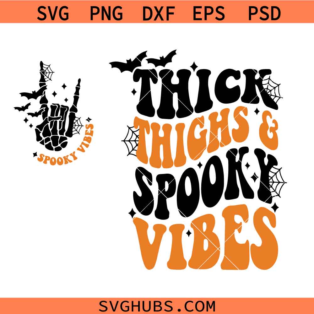 Thick Thighs and Spooky Vibes SVG PNG, Spooky Halloween vibes svg png, retro Halloween spooky svg png