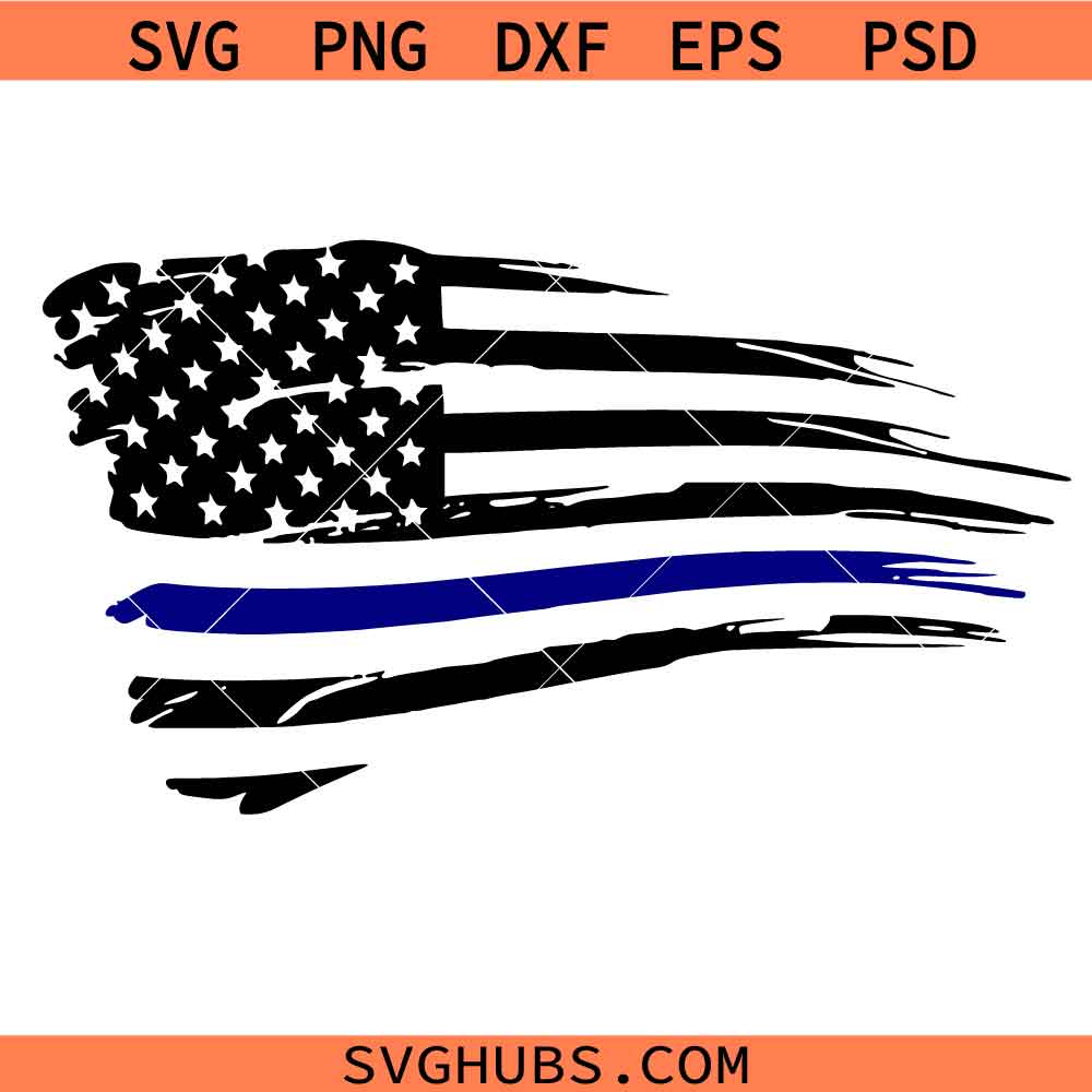 Thin Blue Line Distressed American Flag Svg Png, USA Police flag Svg Png