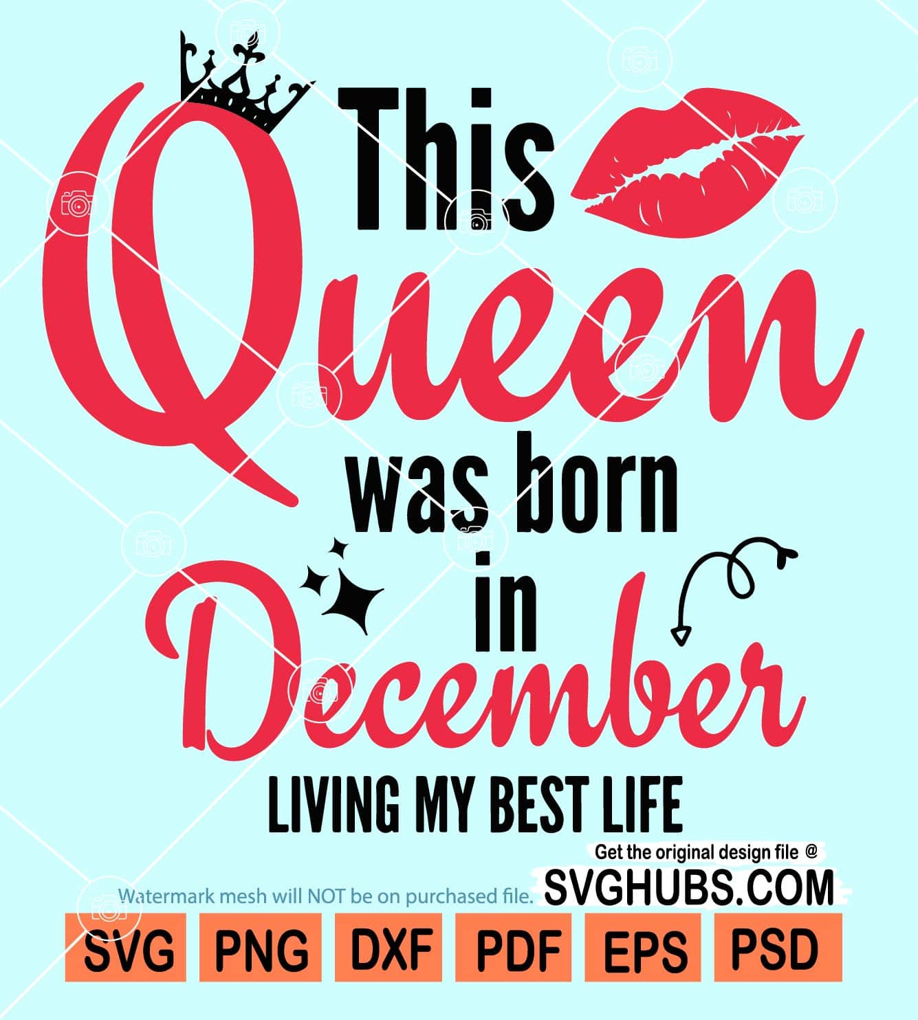This queen was born in december svg, December queen svg, birthday svg, birthday girl svg, December birthday svg, kiss lips svg, birthday crown svg, queen svg, birthday t-shirt svg, SVG files for Cricut, EPS, DXF, PNG files, Silhouette files