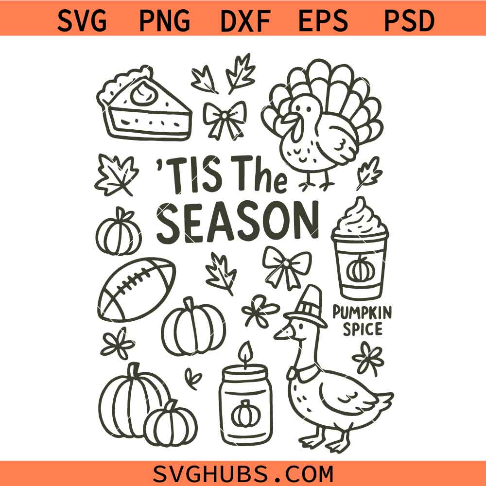 Tis the season Thanksgiving doodles SVGChristmas Season SVG, Fall Vibes SVG, Christmas Decor svg