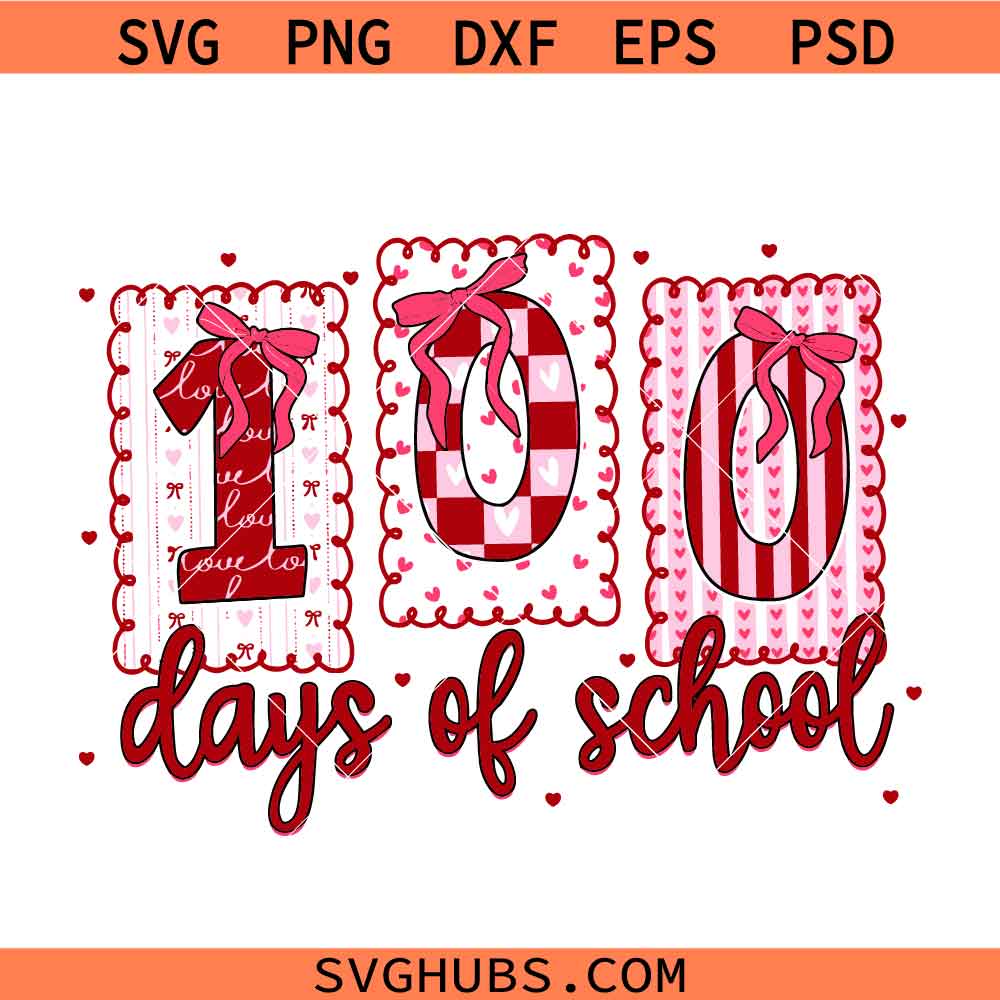 Valentine 100 Days of School Png svg, 100 Days of School svg, Valentine Teacher svg, Valentine School svg