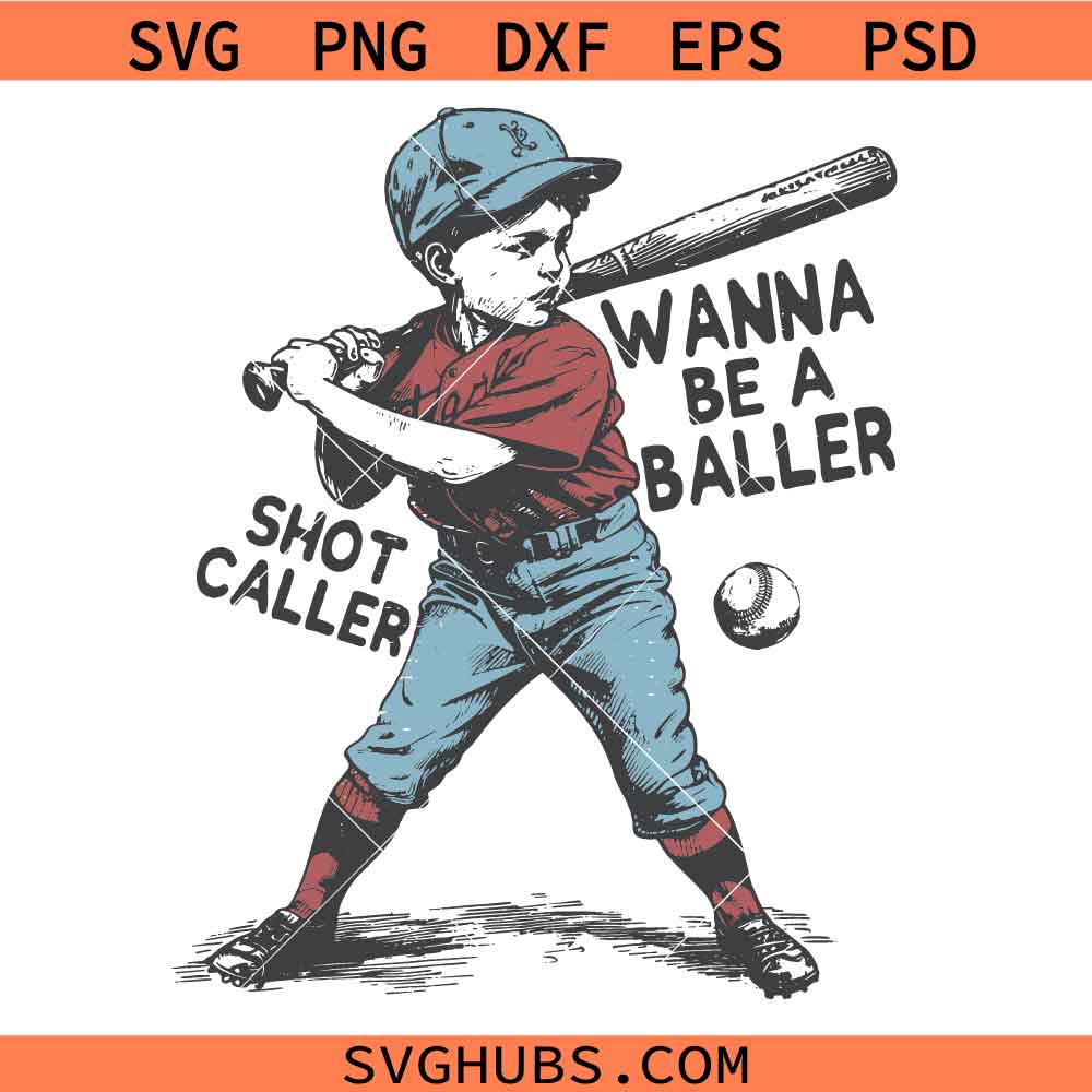 Wanna be a baller shot caller SVG, Shot Caller Baseball SVG, Kid Baseball Shirt SVG
