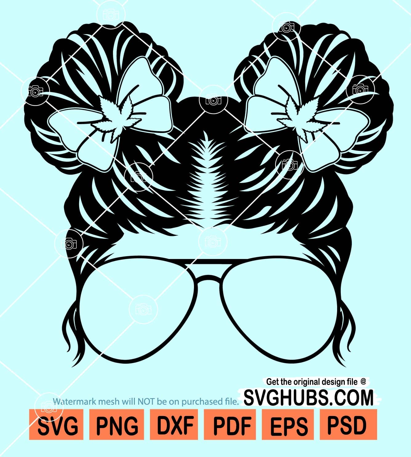Weed kidlife messy bun svg, messy hair weed svg, messy bun sunglasses svg, weed kidlife svg, Messy Bun weed mom svg
