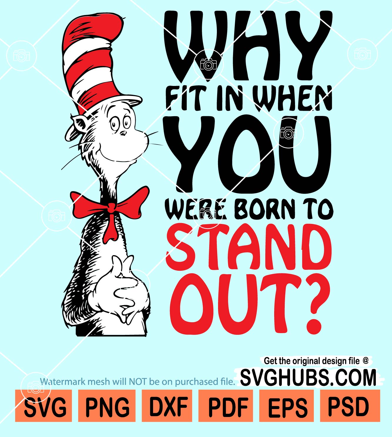 Why fit in when you were born to stand out svg, Cat in the hat svg, Motivational svg, Dr Seuss day Svg, Dr. Seuss quote svg, Dr Seuss Day Shirt svg, Dr Seuss Svg, SVG files for Cricut, SVG Hubs, and sublimation PNG files.