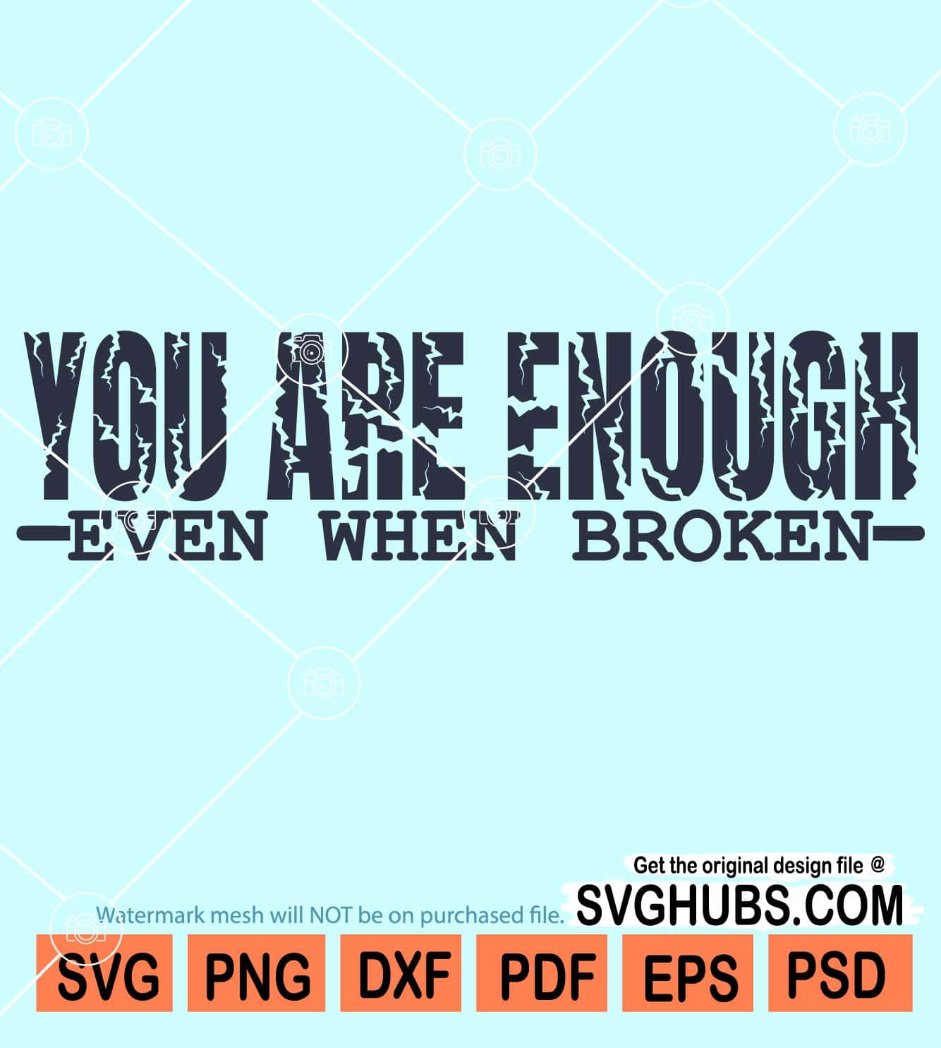 You are enough even when broken svg, Inspirational quote svg, Motivational Quotes Svg, Positive quote svg, Positive SVG, Positive Sayings Svg, Inspirational SVG, Life Quotes Svg, SVG files for Cricut, SVG Hubs, sublimation PNG files.